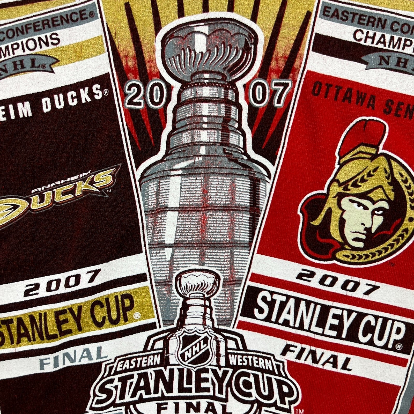 Vintage 2007 Stanley Cup Final Ducks vs Senators T Shirt Mens Large Red NHL Hockey Tee