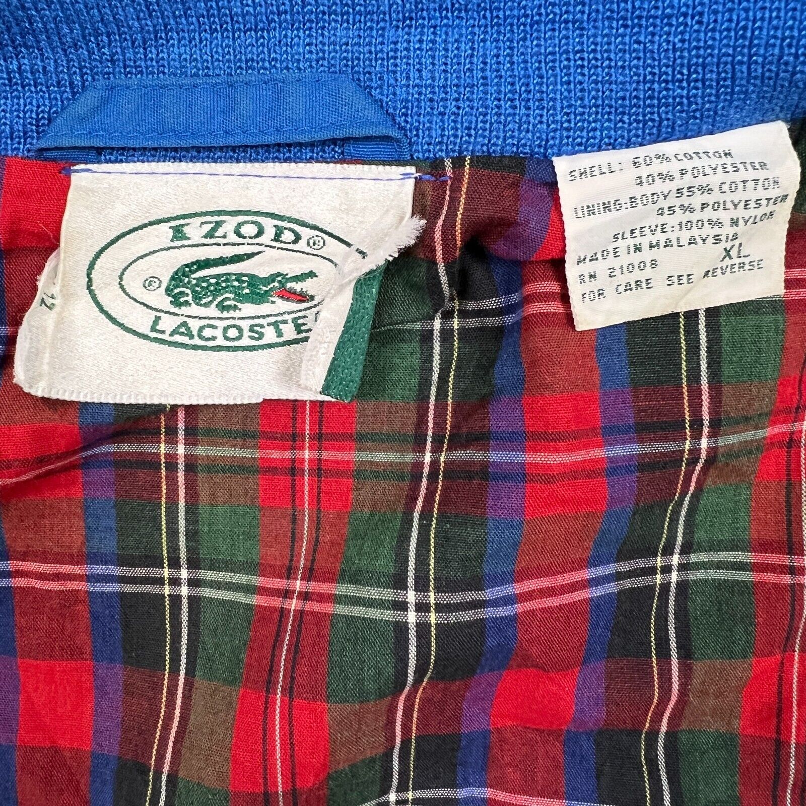 Vintage 80s Izod Lacoste Harrington Jacket Mens XL Blue Plaid Lined Light Bomber