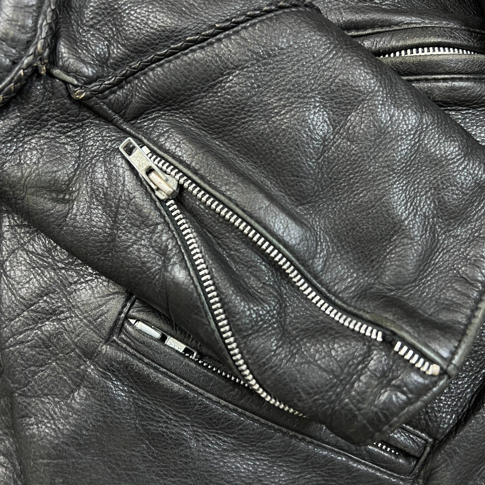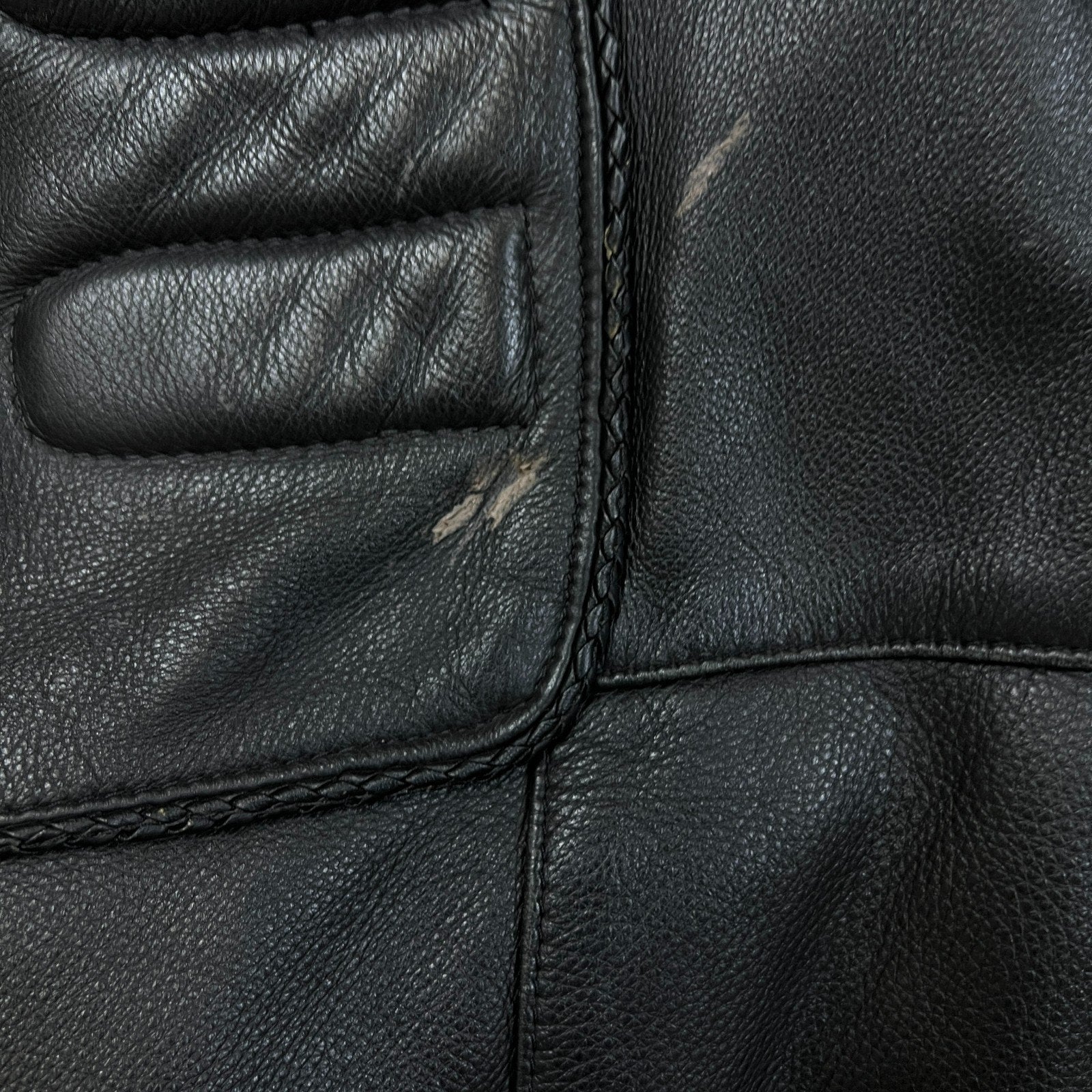 Vintage 80s Leather Ranch Motorcycle Jacket Mens Large Black Padded Biker Moto