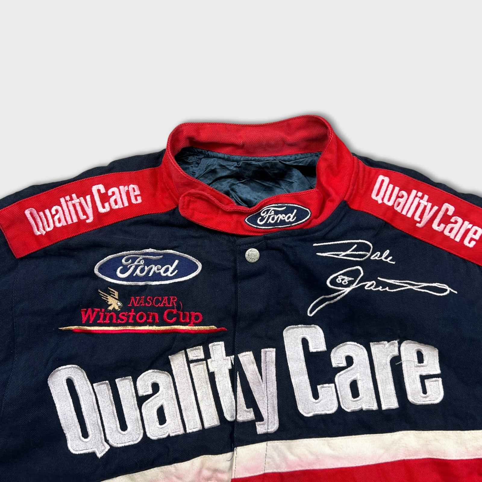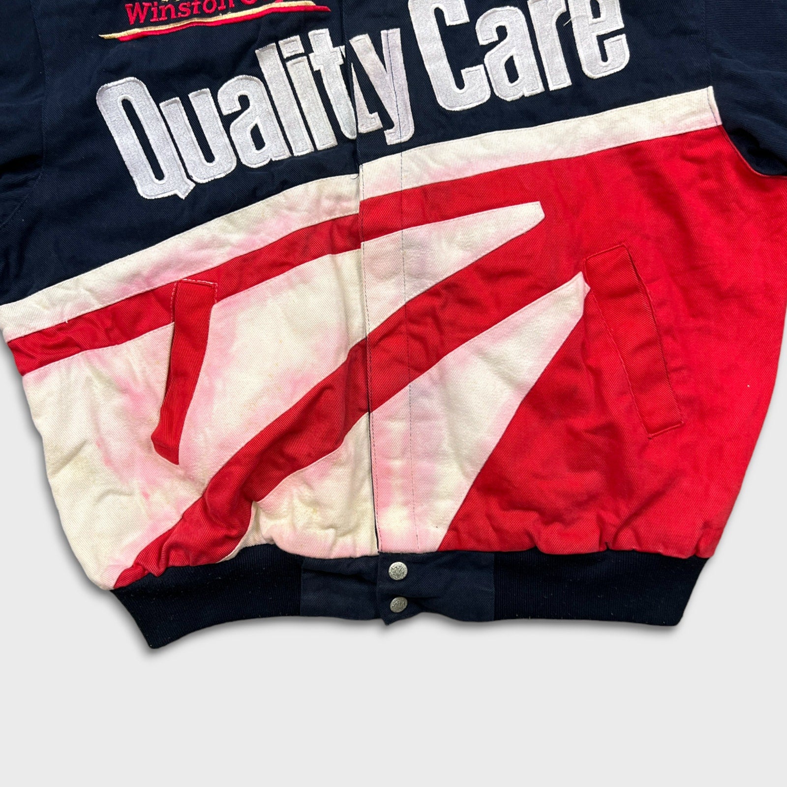Vintage 90s Jeff Hamilton NASCAR Jacket Large USA Dale Jarret Ford Racing Quality Care