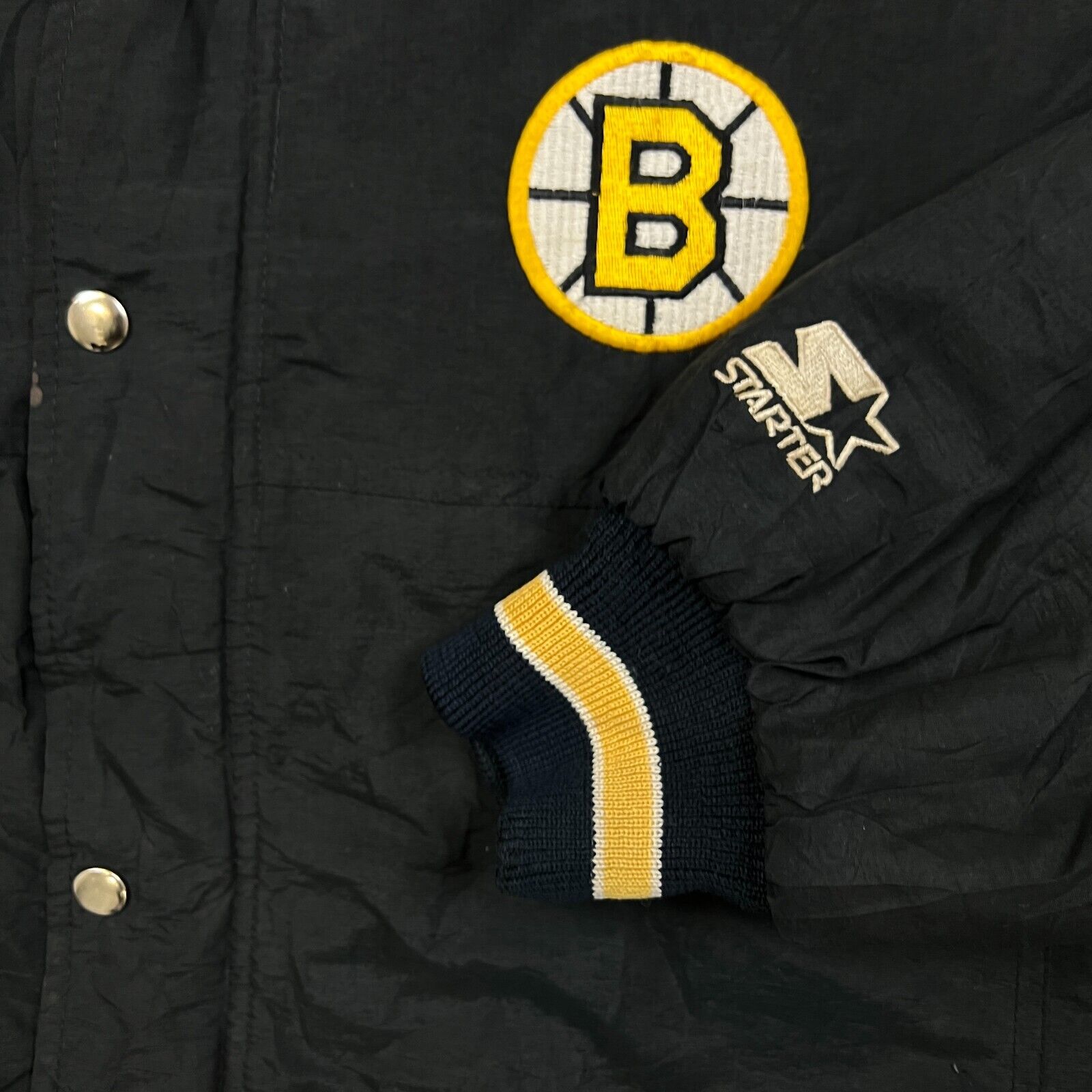 Vintage 90s Starter Boston Bruins Jacket Mens Medium Black NHL Hockey Full Zip