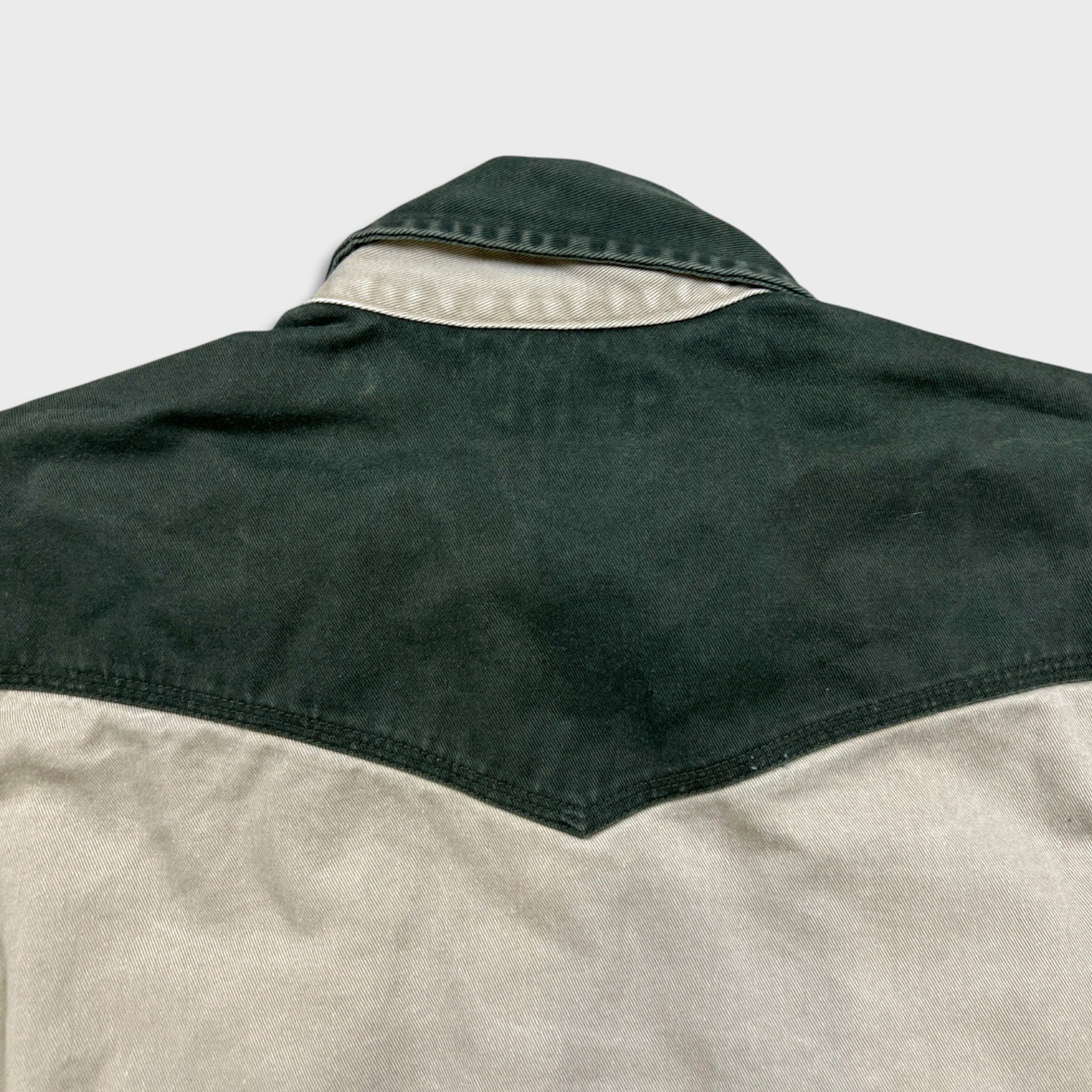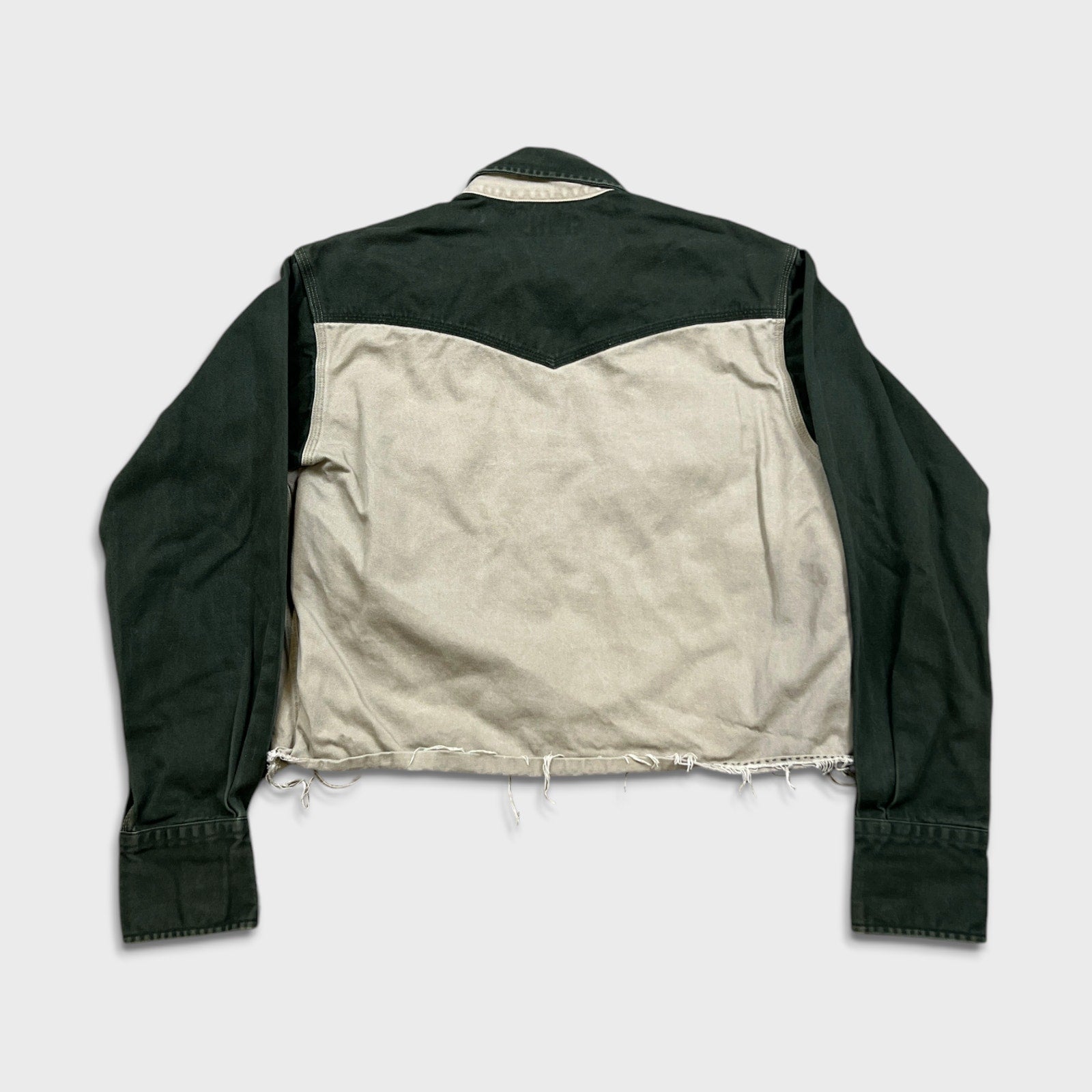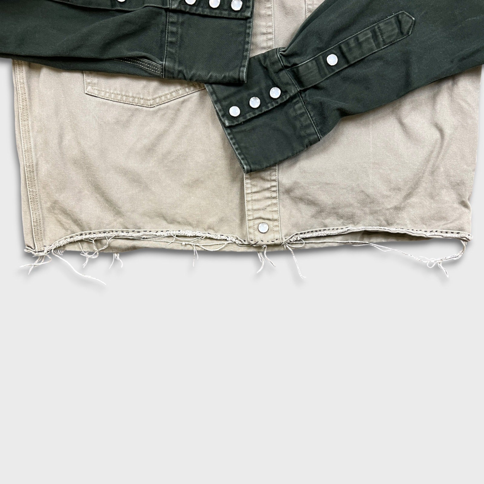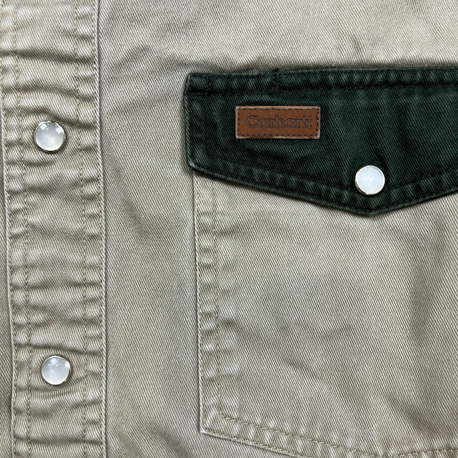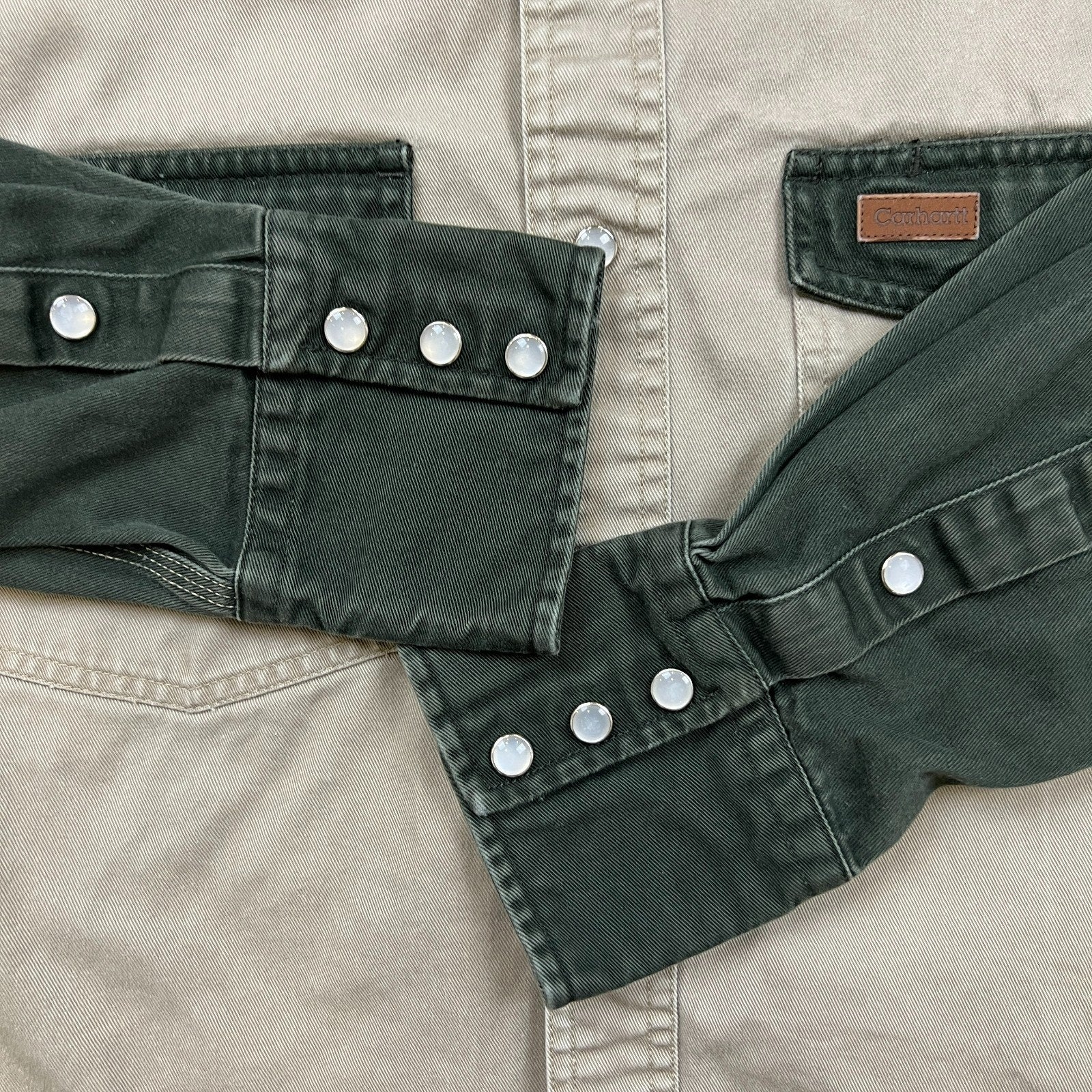 Vintage Carhartt Jean Jacket Womens Small Beige Workwear Thrashed Cropped Button Up