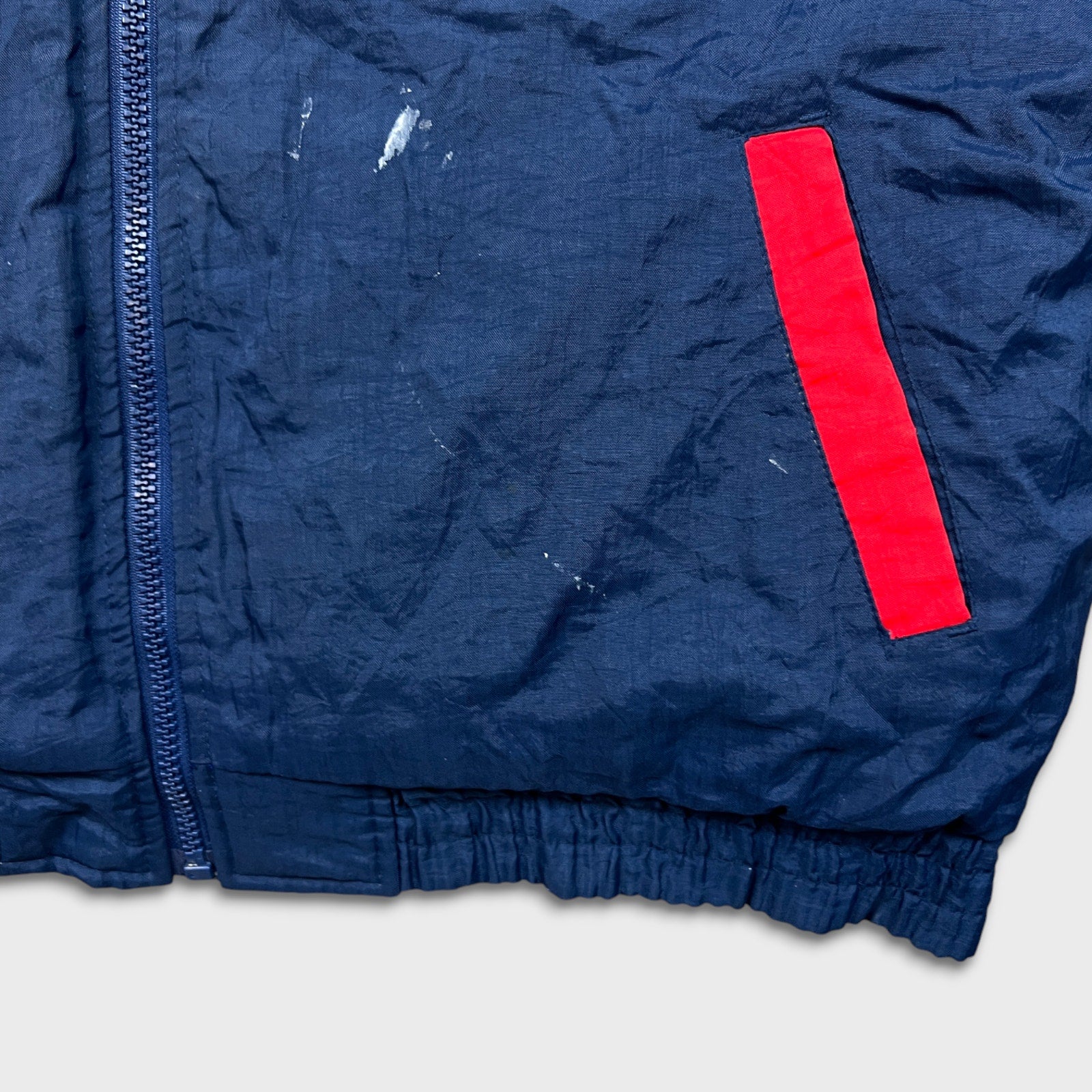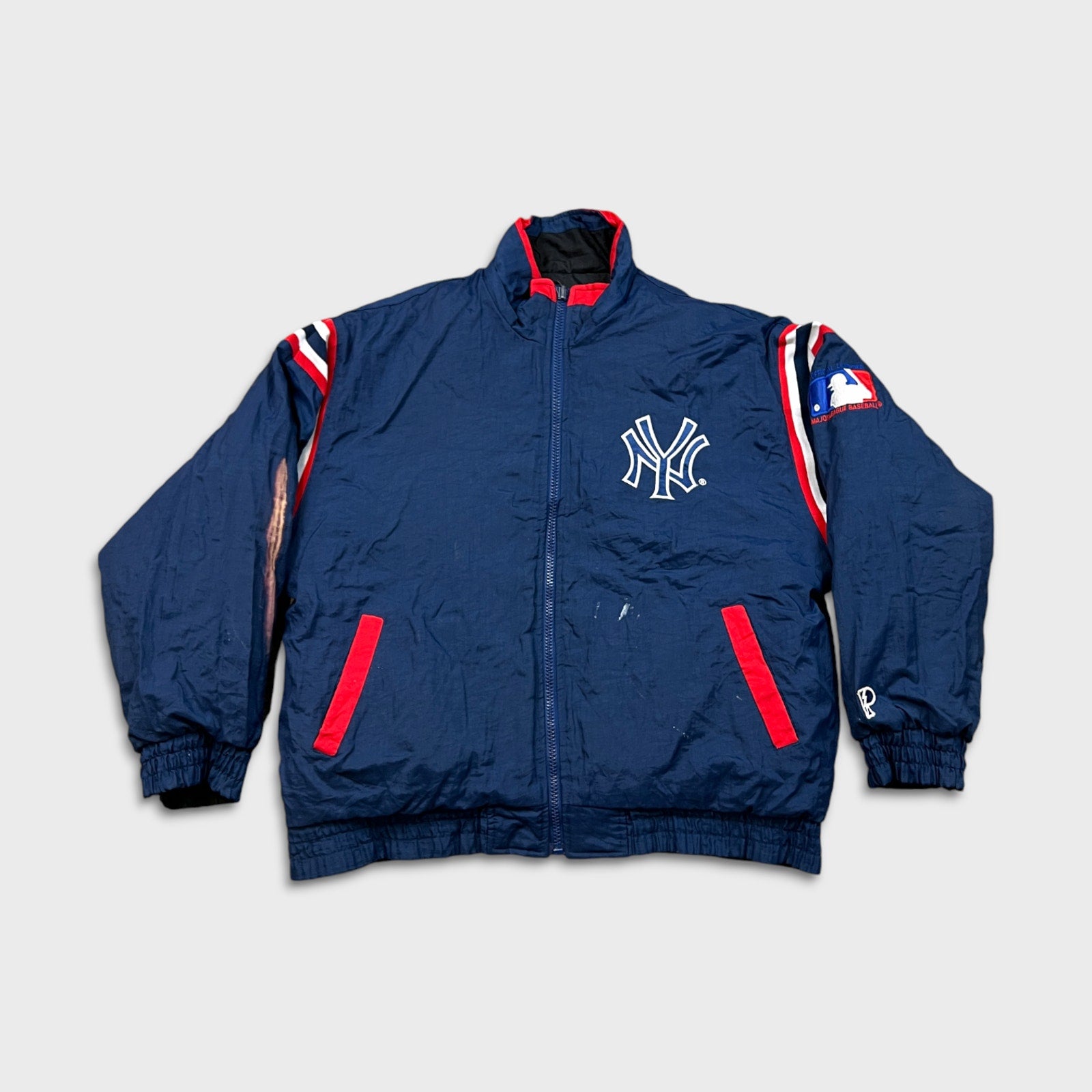 Authentic 1990s Pro Player piece capturing the golden era of MLB streetwear. Known for premium craftsmanship and bold team designs, Pro Player defined 90s sports fashion. This reversible Yankees jacket delivers two iconic looks in one classic black with embroidery and navy with red accents. A timeless statement for collectors and vintage sportswear fans alike.