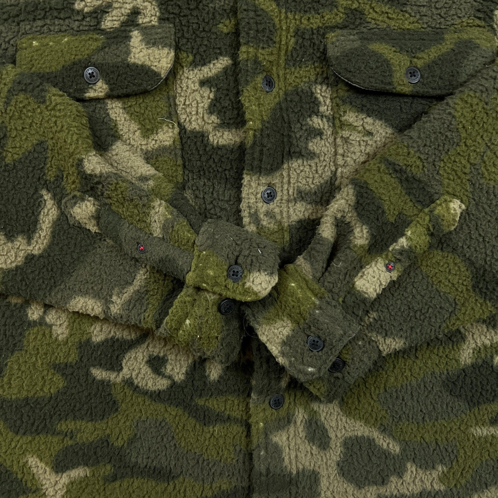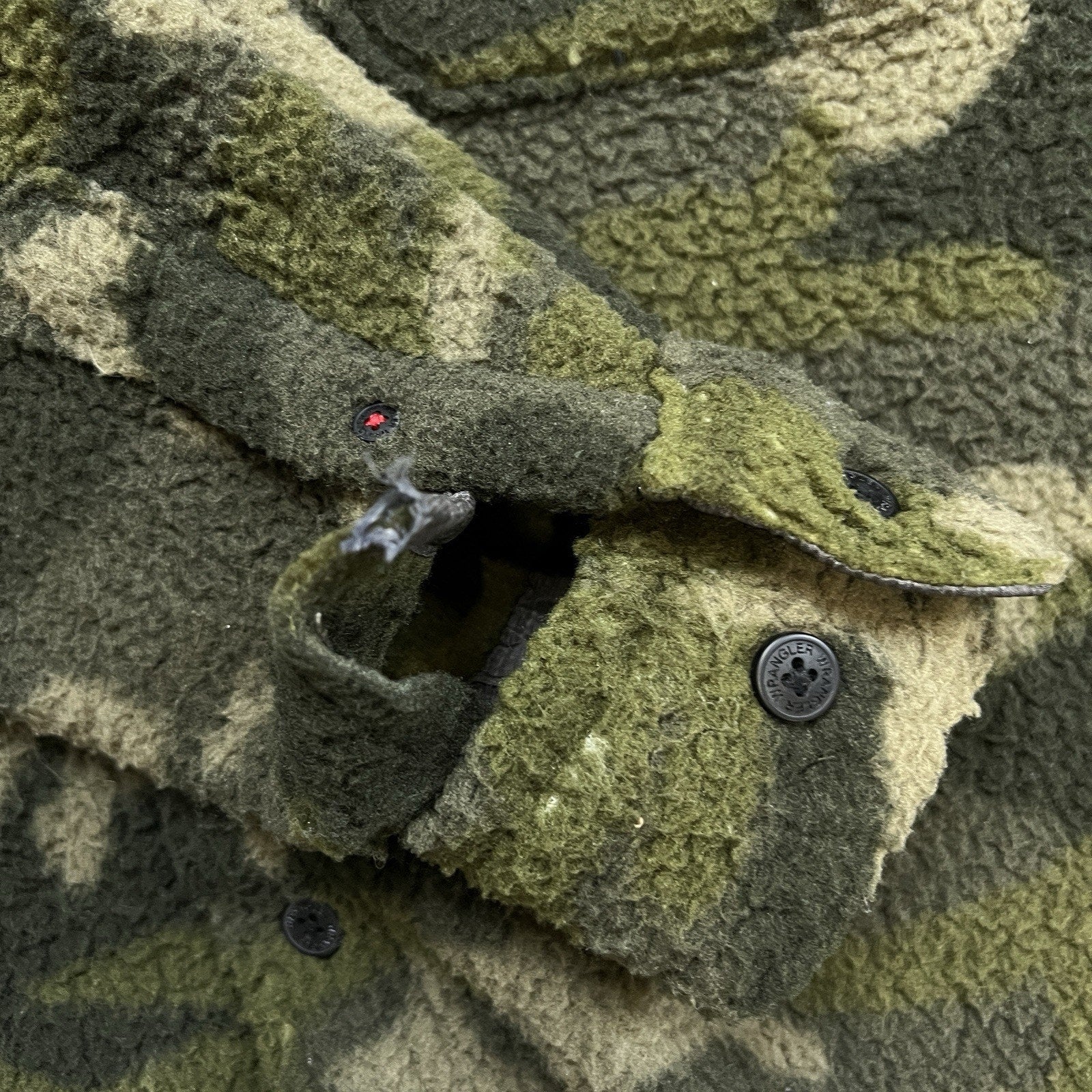 Vintage Wrangler Sherpa Jacket Mens Large Green Camo Button Up Outdoor Fleece